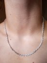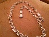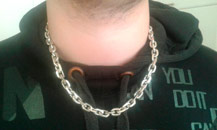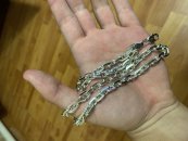 Полновесная цепочка. На фото изображена якорная серебряная цепь массой более 100 грамм и длиной около 60 см. Как показывает практика, цепочка с такими размерами привлечёт скорее мужское внимание, поэтому данную цепочку можно по достоинству назвать «мужской». Но не спешите закрывать страницу, если Вас не устраивают её размеры, ведь Вы всегда с лёгкостью сможете настроить её параметры (нажав на ссылку "Выбрать другие размеры") так, как считаете наиболее подходящими, отчего также может измениться и её стоимость.