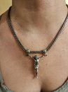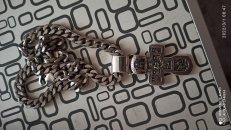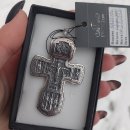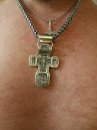 Изображено на кресте: Распятие Христово. Святая Троица. Святой Николай Чудотворец. Мученик Трифон. Три святителя. Икона Божией Матери "Толгская". Ангел Хранитель. Преподобный Сергий Радонежский. Святой Спиридон Тримифунский.1. Размер: 7 х 4 мм